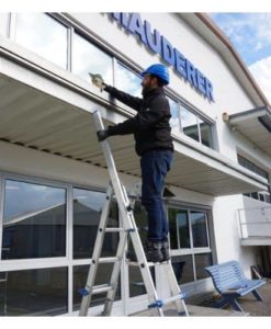 Mehr Sicherheit und Komfort: beim Arbeiten auf Stehleitern fehlt dem Nutzer im oberen Bereich die zusätzliche Sicherheit des Leiternholms zum Festhalten. Man steht praktisch freihändig auf der Leiter. Zusätzlichen Halt bietet der schnell montierbare Handlauf.